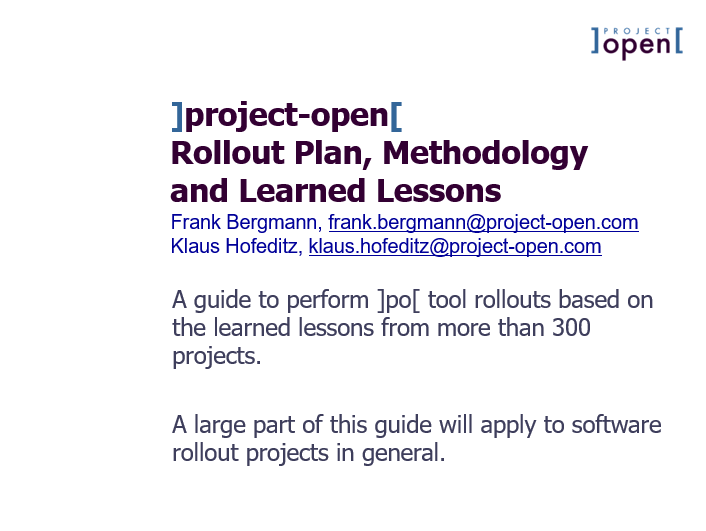 These are the collected learned lessons from ~15 years of rolling out project management software in customer organizations of various sizes.